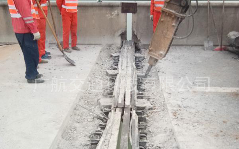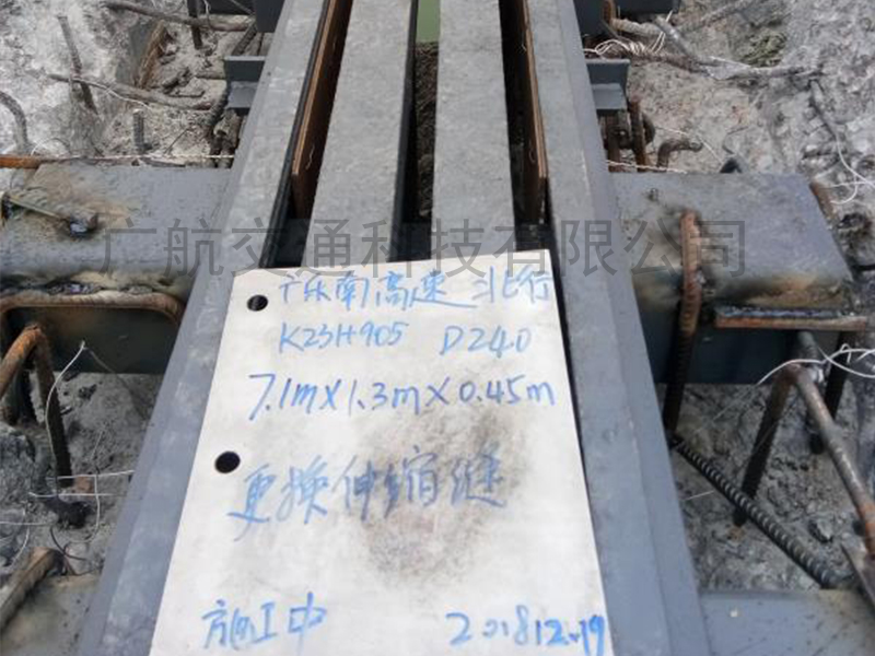 2018年12月19日,廣東廣航交通對其北行方向進行伸縮縫更換,使用廣航交通生產(chǎn)的D240型橋梁伸縮縫。