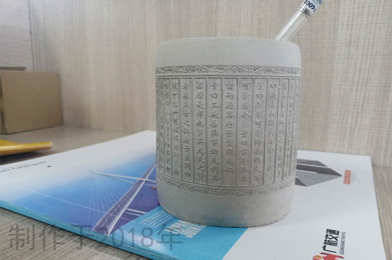 作為一家專業的快干水泥廠家,廣航交通自然少不了用GH快干水泥制作一些小玩件,比如下面的這個字跡清晰可見的筆筒: