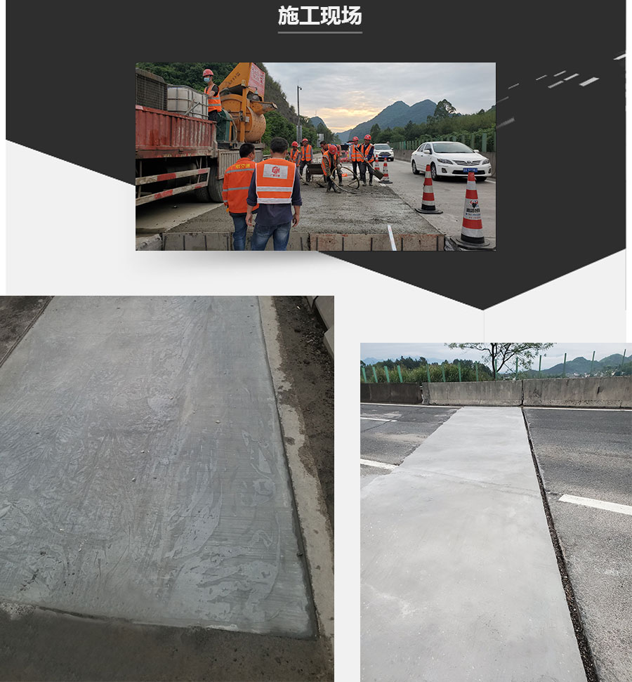 GH高性能混凝土(快干水泥)是廣航交通專利產(chǎn)品之一,它是一種高品質(zhì)聚合物改性水泥,具有早期高強(qiáng)度性能,廣泛應(yīng)用于高速公路,停車場(chǎng),隧道,廠房,港口等混凝土基面的快速修補(bǔ),訂購電話:13318810966